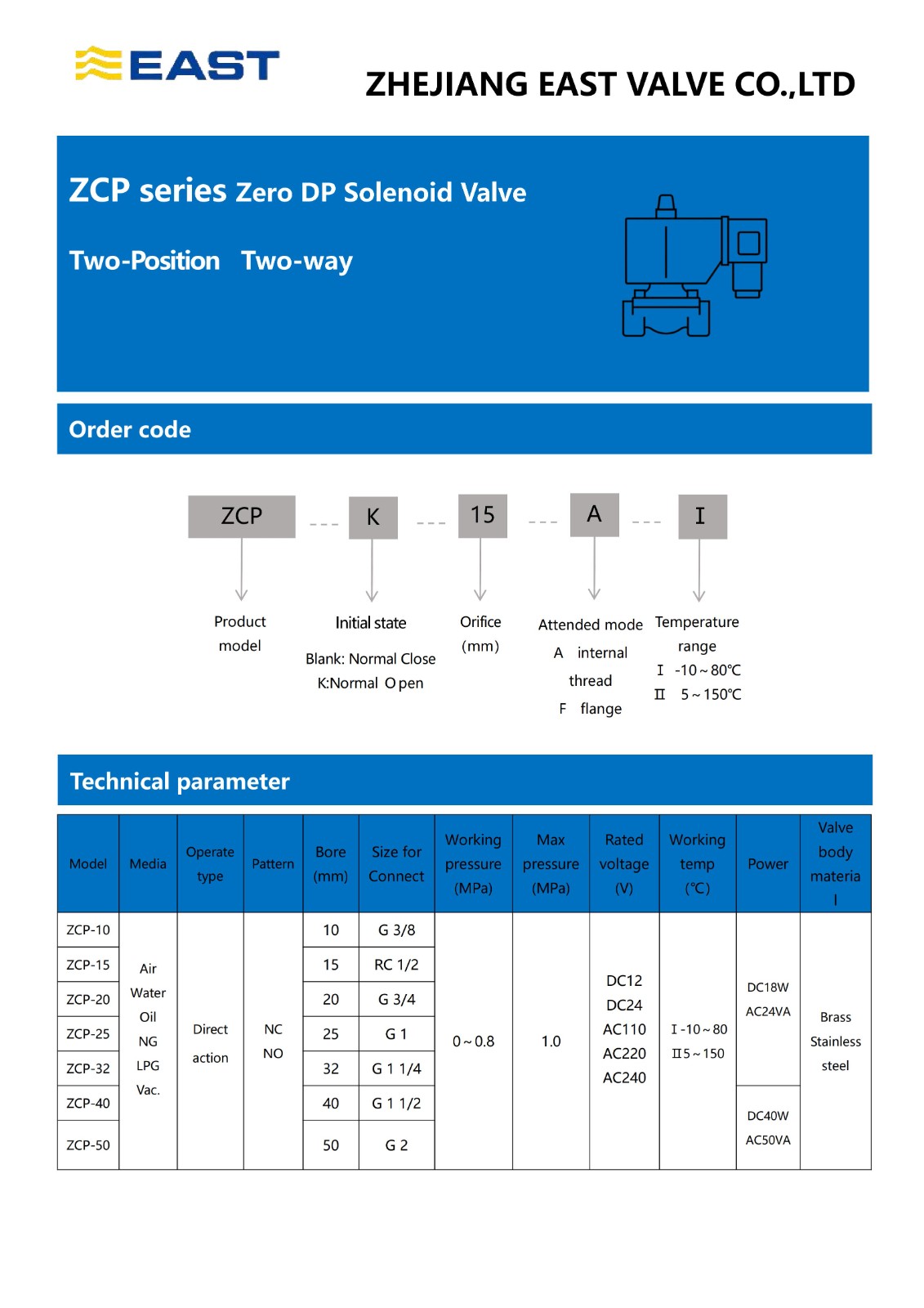 ZCP series Zero DP Solenoid Valve